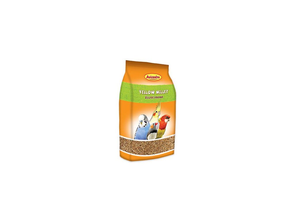 Žluté proso pro exoty, určeno jakko doplňkové krmivo. Zajistěte dostatek pitné vody a zkrmujte dle potřeby ptáků.