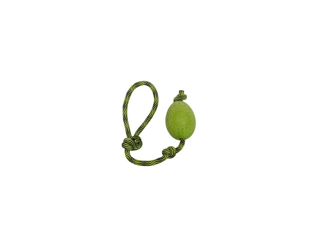 Silný nylonový provaz umožňuje snadné házení. Hračka plave ve vodě, odráží se a pevný materiál vydrží i nadšené kousání.