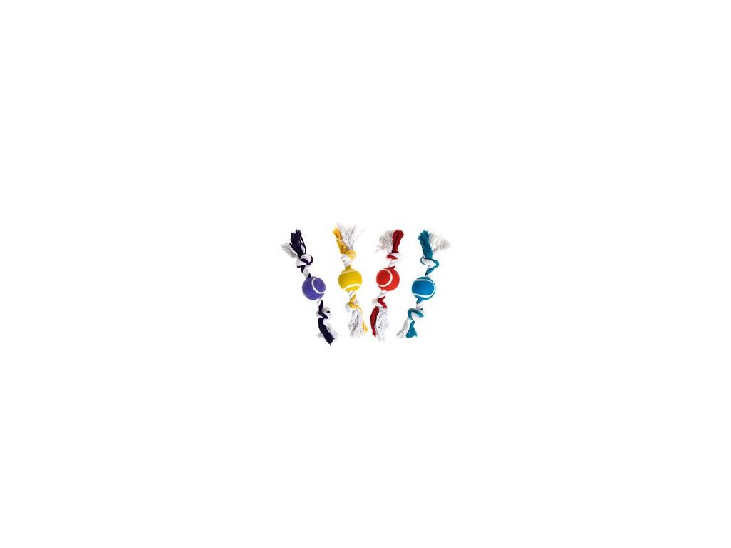 Hračka pro psy - tenisový míček na provazu. Tento tenisový míček s integrovanými bavlněnými uzly je ideální pro házení, aportování a škubání. Design tohoto tenisového míčku umožňuje každému psovi dlouhou a bezpečnou hru.