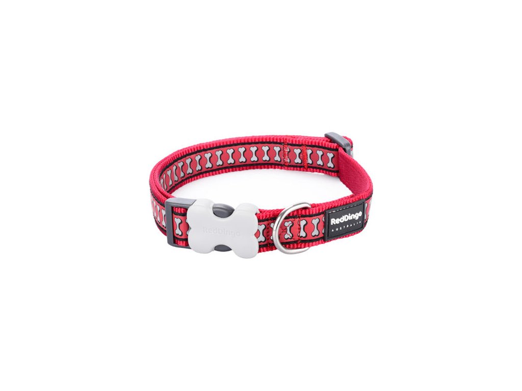 Red Dingo obojek reflexní – Bones Red – 15 mm x 24-36 cm