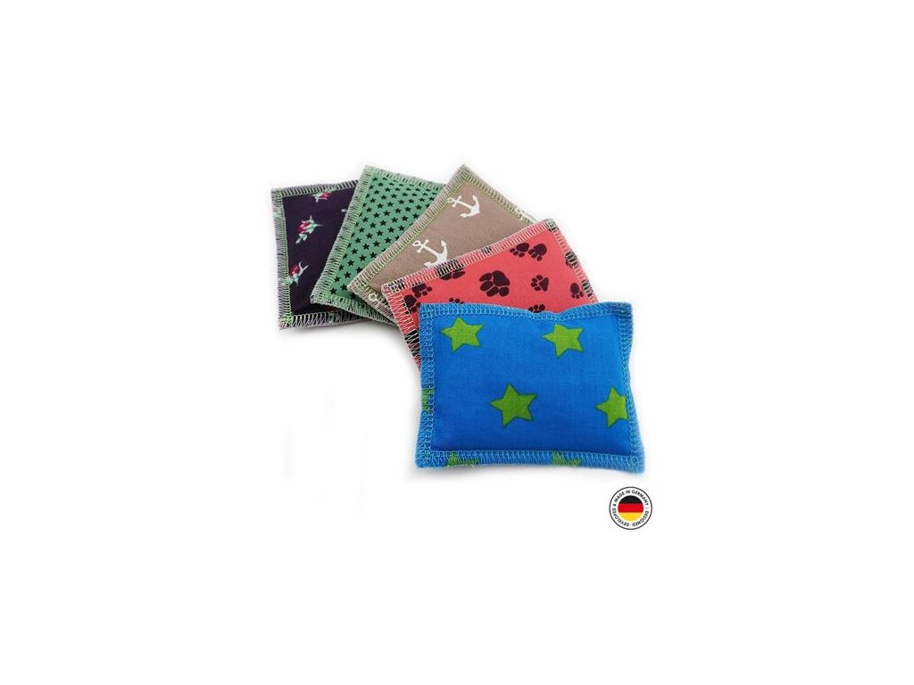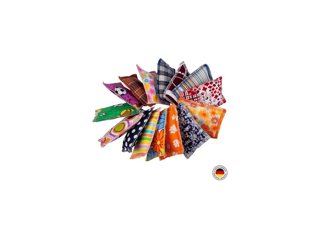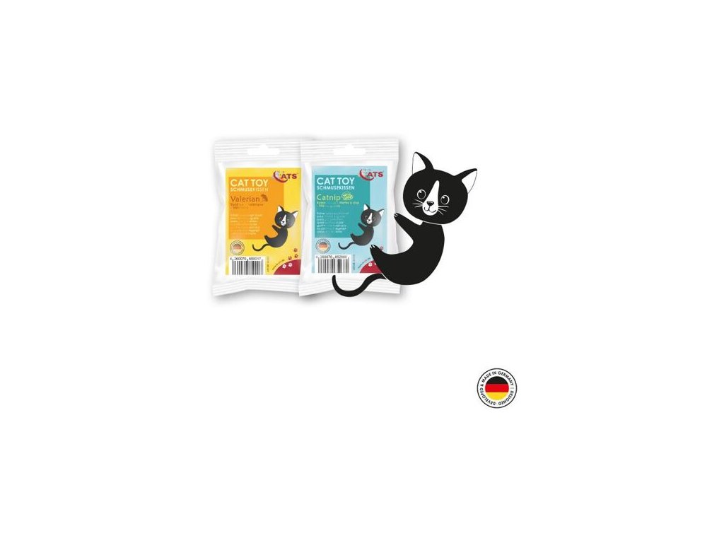 Malý, skvělý, s neodolatelnou vůní šanty kočičí. Měkký polštářek naplněný vatou a šantou zajistí dlouhé hodiny zábavy. Díky měkké výplni a praktické velikosti může být chytán mezi tlapky, olizován nebo si ho Váš chlupatý kamarád může odnést na klidné místo, kde si bude vzrušující vůni šanty v klidu užívat. Šanta kočičí má velmi stimulující vliv na mnoho koček a zajišťuje, že polštářek bude zajímavý po dlouhou dobu. Vzhledem ke špičkové kvalitě zpracování polštářku s osvědčenou náplní z čisté šanty kočičí a vaty, vydrží dlouhou dobu intenzivního mazlení. Polštářky jsou vyrobeny podle standardu Oeko-Tex 100 (pro zdravotně nezávadné textilie) v Německu. Polštářek na mazlení si zamilujete Vy i Vaše kočka. Při výrobě jsou používány pouze spolehlivě vybírané nezávadné suroviny a bezpečné procesy, při kterých nejsou použita žádná lepidla, plasty, kovové díly nebo součásti, které by mohly být spolknuty. Velikost: 7,5 x 10 cm Barva: dle aktuální nabídky Šanta kočičí (Nepeta cataria) Šanta kočičí patří do čeledi hluchavkovitých a postupem času se rozšířila ze severní Afriky a Středomoří do Evropy, Severní Ameriky a do dalších částí světa. Tato vytrvalá rostlina je velmi populární jako okrasná a zahradní rostlina. Kromě toho ji občas můžeme najít i planě rostoucí u živých plotů, skládek, podél silnic a cest. Měří 60 až 100 centimetrů a kvete bílými až bledě modrými, někdy i načervenalými květy. Šanta kočičí je populární náplň do kočičích hraček, jelikož je pro většinu koček téměř neodolatelná. Kočičí posedlost šantou může být často důvodem k obavám mnoha majitelů koček. Dělají si starosti s potenciální závislostí, abstinenčními příznaky po hraní nebo s poškozením zdraví. Tato obava je však zcela neopodstatněná. Přitažlivost této rostliny pro naše kočky je známá již dlouhou dobu. Důvodem je přítomnost účinných látek nepetalaktonu a actinidinu. Actinidin lze nalézt také v kozlíku lékařském, který je pro kočky také velmi atraktivní. Nepetalakton je přírodní látka ze skupiny iridoidů a slouží rostlině k ochraně před poškozením hmyzem. Obdobně je šanta kočičí používána i jako účinný prostředek proti blechám, klíšťatům, švábům, komárům a zahradním škůdcům. Dosud nebylo plně objasněno, proč je šanta pro kočky tak atraktivní. Předpoklad, že esenciální oleje obsažené v rostlině působí jako jakési afrodiziakum pro kočky, nebyl nikdy prokázán. Tuto teorii nepodporuje ani fakt, že šanta působí i na kastrované kočky. Po kontaktu s rostlinou domácí zvířata ukazují vzory chování, které jednoznačně patří především mezi projevy oddanosti a pohodlí. Nadšeně si o hračku se šantou třou hlavu, olizují ji a hrají si s ní. Často je chování doprovázeno vrněním. Toto nadšení trvá pět až patnáct minut. Poté následuje tzv. refrakční fáze, kdy se hračka stává již nezajímavou a kočka na šantu vůbec nereaguje. Tato fáze trvá asi jednu hodinu. Je třeba také zdůraznit, že jsou kočky, které na šantu nereagují vůbec. Koťata mladší třech nebo čtyř měsíců se o tuto atraktivní rostlinu nezajímají vůbec. Starší zvířata také nejsou přitahována vůní příliš dlouho. Navíc, jen 50-70% koček je šantou přitahováno. Přitažlivost k šantě je dědičná. Pokud byli rodiče šantou přitahováni, koťatům se bude také líbit. Neexistují žádné rozdíly mezi vlivem na samce a samice, kastrované či nekastrované nebo různá plemena koček. Mimochodem, touto rostlinou jsou přitahovány i jiné rody kočkovitých šelem, např. puma, rys nebo lev. Aroma šanty kočičí, které se uvolňuje z hraček 4Cats, je pro kočky absolutně neškodné. Nicméně požití velkého množství šanty může způsobit dočasné gastrointestinální problémy. Proto doporučujeme používat hračky se šantou pouze pod dohledem a odebrat poškozenou hračku, aby kočka nepozřela rostlinu nebo výplň hračky. Doporučujeme dávat hračky se šantou kočce jen jednou za čas, aby zájem o ni přetrvával. Pokud zájem opadá nebo máte dojem, že si Vaše kočka aroma užívá příliš dlouho, hračku osušte a uschovejte ji na bezpečném místě mimo dosah kočky. K zamezení střetů mezi kočkami, je nejlepší oddělit všechny kočky se svou hračkou od sebe. Hračky s šantou jsou také vhodné k rozptýlení ve stresových situacích, např. při návštěvě veterináře. Hračka se šantou v přepravním boxu kočky dokáže zázraky. Zkuste to!Doplňkové parametry