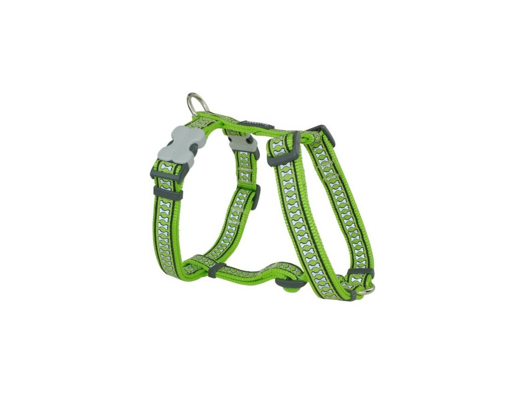Red Dingo postroj reflexní – Bones Lime – 25 mm x 56-80 cm